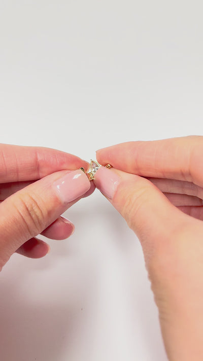 A refined blend of edge and elegance- the "Celeste" ear cuff, exclusively designed by Rudy Santayana features a pear cut lab diamond accent on a double row of brilliant cut pave set diamonds. Crafted in 14kt. gold, this cuff layers beautifully with your favorite hoops or studs, making you look 10 years younger!