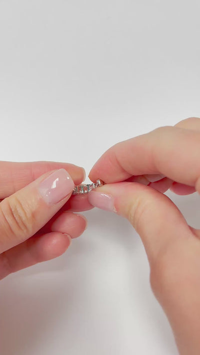 Light dances across six emerald cut lab diamonds in this "Geneva" ear cuff, designed by Rudy Santayana. Arranged in perfect alignment, and crafted in 14kt. white gold, the clean lines of this cuff reflects a mirror-like sparkle that makes you look 10 years younger!