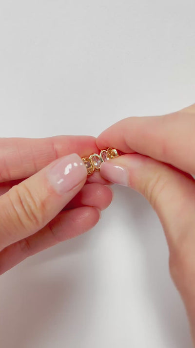 The "Vienna" ear cuff, designed by Rudy Santayana, glows with a sequence of oval cut lab diamonds set in 14kt. gold bezels. This cuff is the perfect addition to your earring collection - transitioning any look from day to night, and making you feel 10 years younger!
